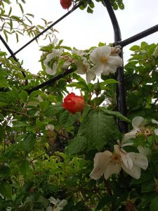 Ma torniamo alla visita…sono intenta a guardare le composizioni quando rinizia a piovere!!!Non sono intenzionata a fermarmi e proseguo percorrendo i vialetti e cercando di fotografare il più possibile. Una nuova chicca di questa edizione è la ROSA DI GENOVA, una rosa a cespuglio con grandi fiori di colore bianco e rosso, colori simbolo della città . Bene sembra che la pioggia mi conceda un po ‘ di tregua e proseguo..Non so dove guardare,un tripudio di colori e di ambientazioni che ci portano in tutta Italia, ma ecco che vedo…casa..come Et punto il dito verso lo spazio de IL PARCO DEL BEIGUA…sono i miei posti, come sassellina di adozione…In questo “spazio ci sono varietà protette , come la viola di Bertoloni e la dafne odorosa, fiore rosa , simbolo del parco.