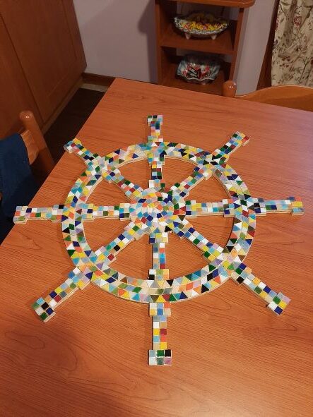 Colpo di scena… informandomi sull’autore , ho scoperto che è un vecchio amico ,Antonio .Durante il lockdown del 2020 ha dato libero sfogo alla sua incredibile manualità, cimentandosi in mosaici artistici, lavorazione del legno e costruzione di orologi personalissimi.