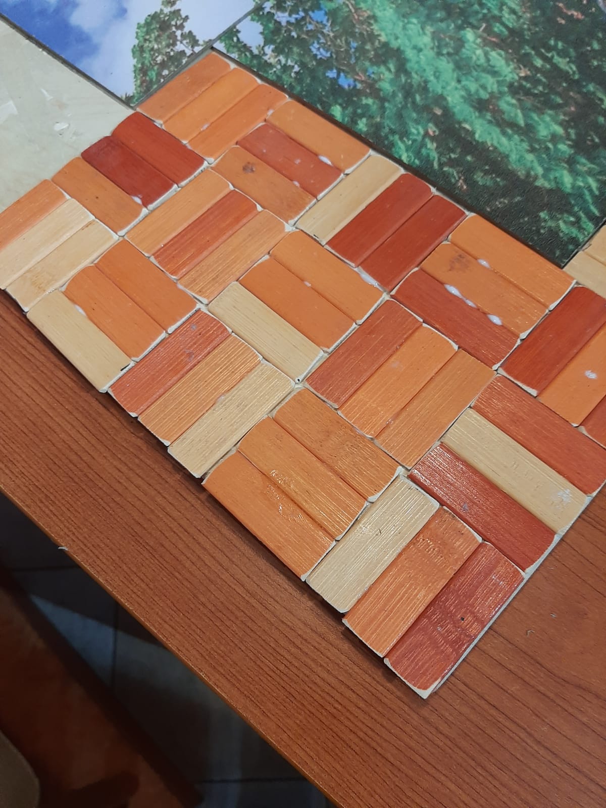 Si riporta il disegno su un pezzo di legno (preferibilmente compensato che e’ un legno morbido ) poi si ritaglia o con il traforo o con il seghetto alternativo e a seguire si attaccano i vetrini con del semplice vinavil ,seguendo il disegno,con l’accortezza di non lasciare dei vuoti enormi.