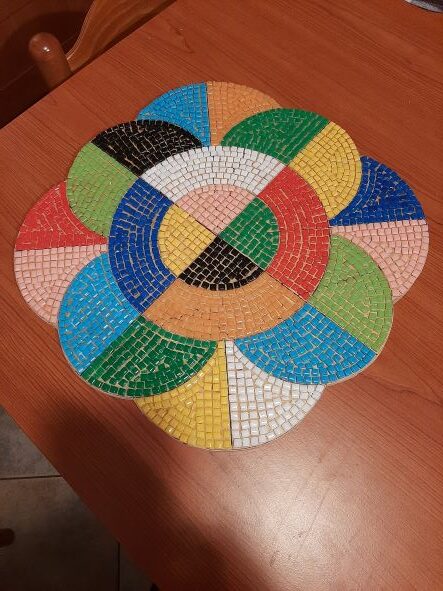 Va detto che con il lavoro che svolgo ,la manualita’ non manca e comunque ho cominciato con le pietre ,per fare il fondo agli acquari ,per finire ai vetri gia’ sagomati ,trovati su amazon .Il problema e’ che sono di misura ridotta (1cm x 1cm ) e non ti danno quindi tanta possibilità di azione, infatti ho fatto tutti mosaici piuttosto semplici e abbastanza squadrati .I vetri non sono ( tranne qualche caso ) vicini uno all’altro ,ma inserisci lo stucco ,che compensa le imperfezioni. La tecnica utilizzata e’ molto semplice.