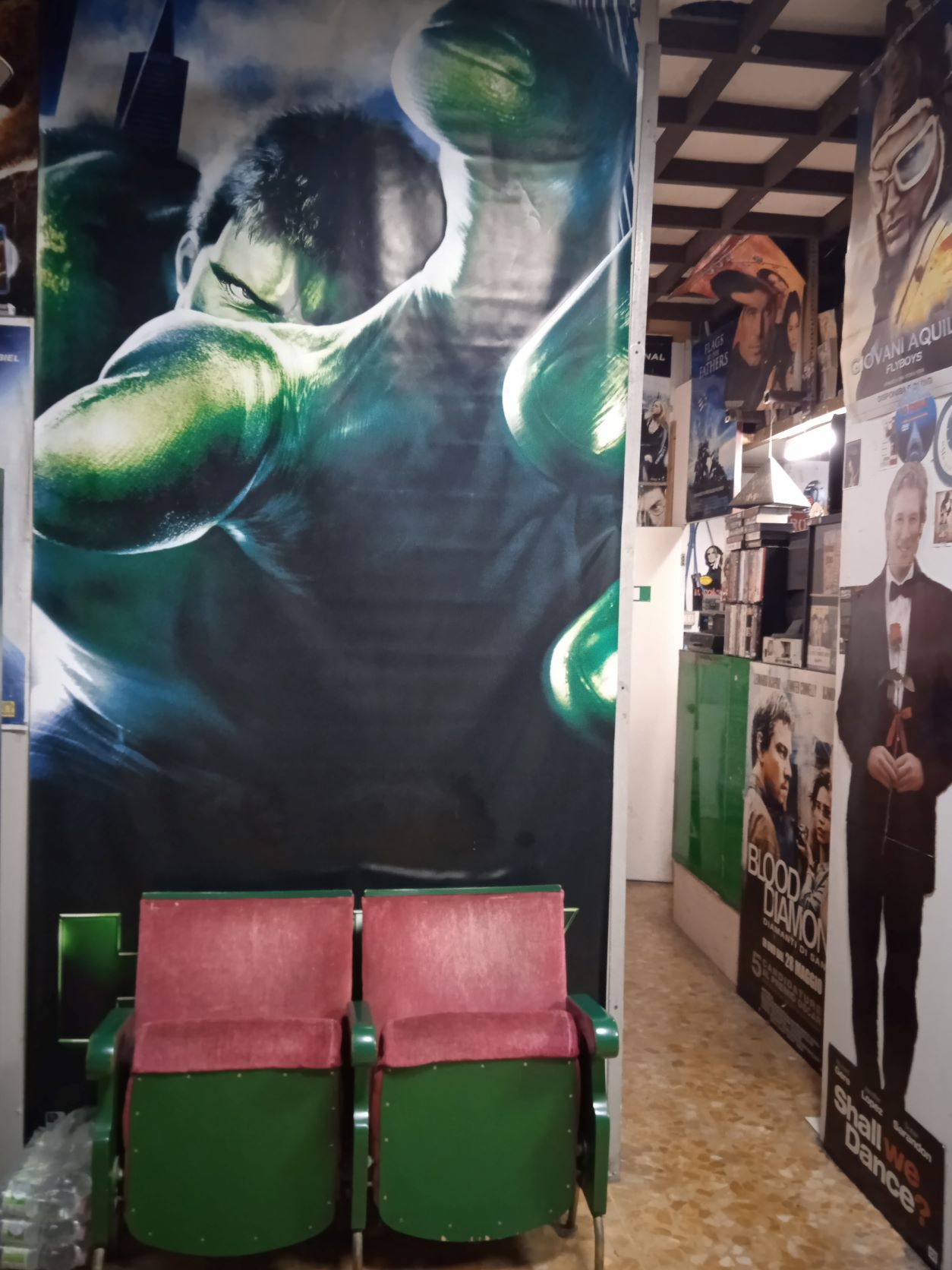 Mi viene spontaneo chiedere quali sono i generi più richiesti per l’affitto e Aldo mi racconta, che attualmente la fanno da padrone i supereroi, seguiti da commedie, drammatici , thriller, mentre chi attinge ai vecchi titoli, sceglie spesso il cinema d’autore , sia italiano con nomi come Fellini, Rosssellini,Montaldo, Germi, sia americano, nome di spicco Gregory Peck e i classici cult ,un nome per tutti Alfred Hitchcock.