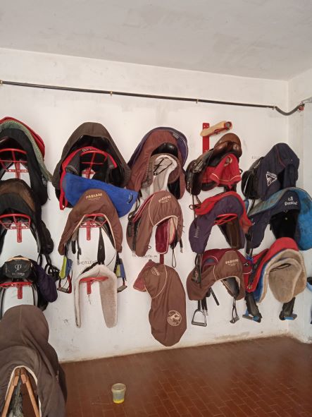Le bimbe, venute per le lezioni di equitazione, sono tutte agitate…felici ,mentre si vestono.. paraschiena e caschetto, nel rispetto delle norme di sicurezza… sono pronte…