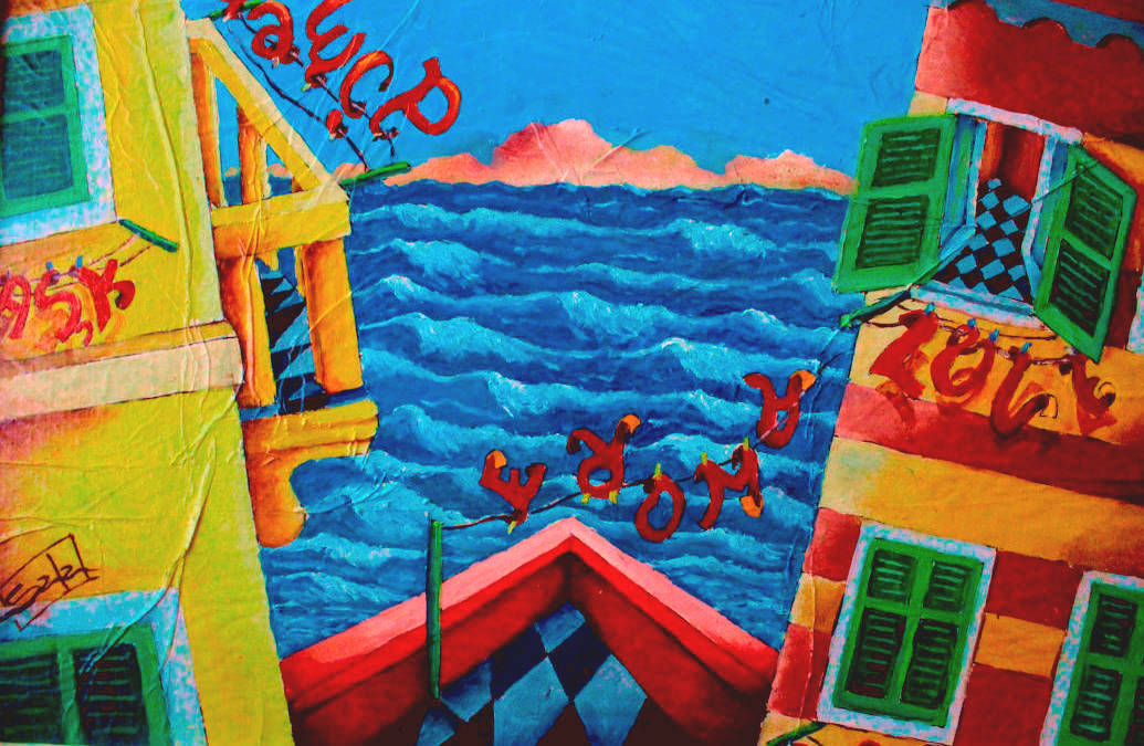 Noi siamo sempre in cammino sul sentiero della vita. Coloro che abitano queste case sono cittadini del mondo con la loro lingua, cultura, cucina e credo religioso e tutti cantano il mantra “LOVE”. Le lettere alfabetiche sono stese al sole e al vento , danzano e volteggiano in questo mio microcosmo cromatico. Nell’aria questo messaggio d’amore sia di buon auspicio per i giorni a venire. La colonna sonora che accompagna l’opera è: “Let the Sunshine In” di Brian Auger, Julie Driscoll & Trinity… il live-motive, che venne utilizzato per il film “Hair”. Con preghiera di lettura e condivisione… l’opera è disponibile presso il mio atelier.