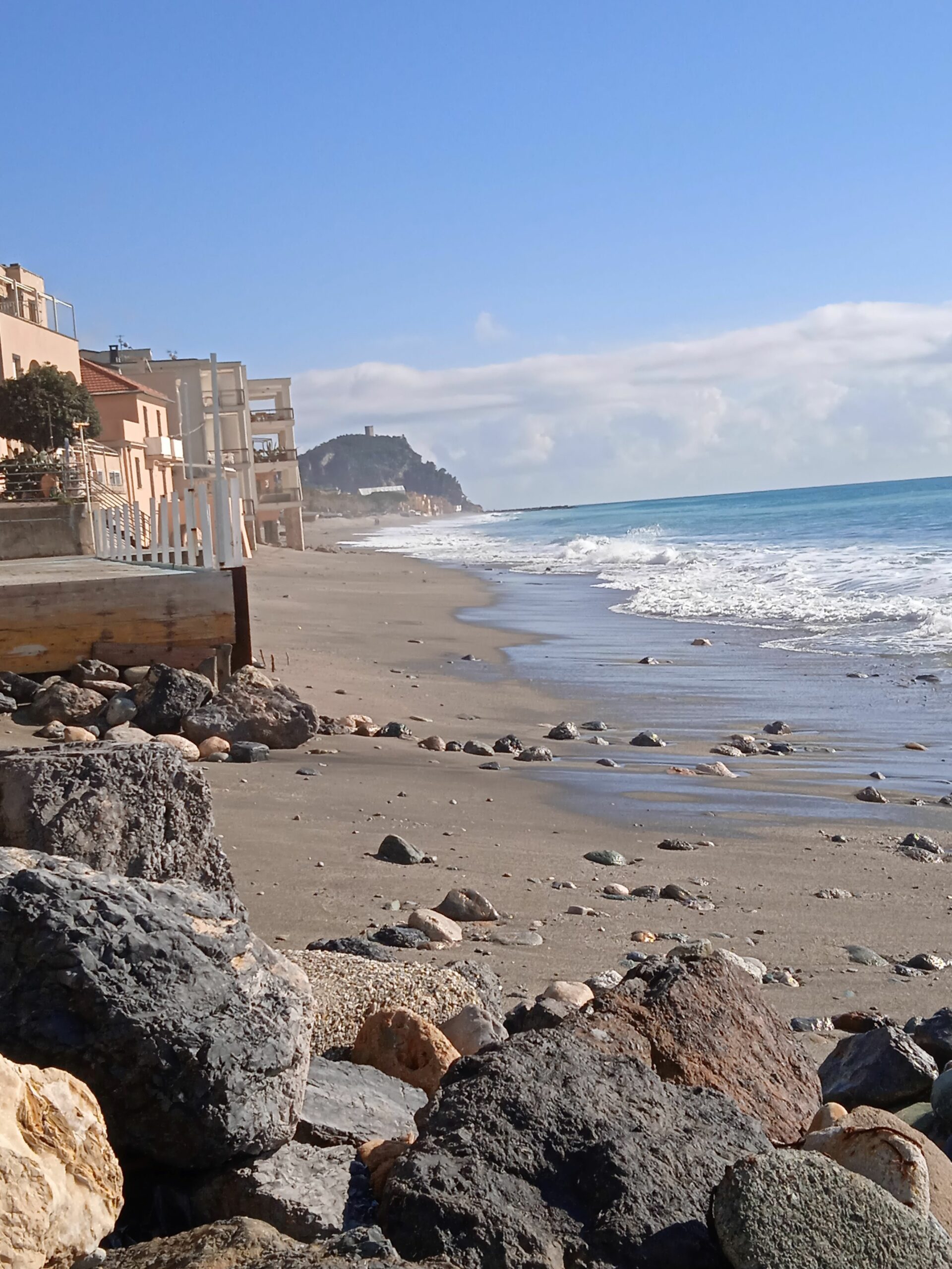 Si procede e davanti agli occhi si apre uno dei posti più panoramici delle riviera di ponente.. Punta Crena e la baia dei Saraceni ,una fusione di colline e il mare. Nelle giornate senza nubi puoi vedere la Corsica.