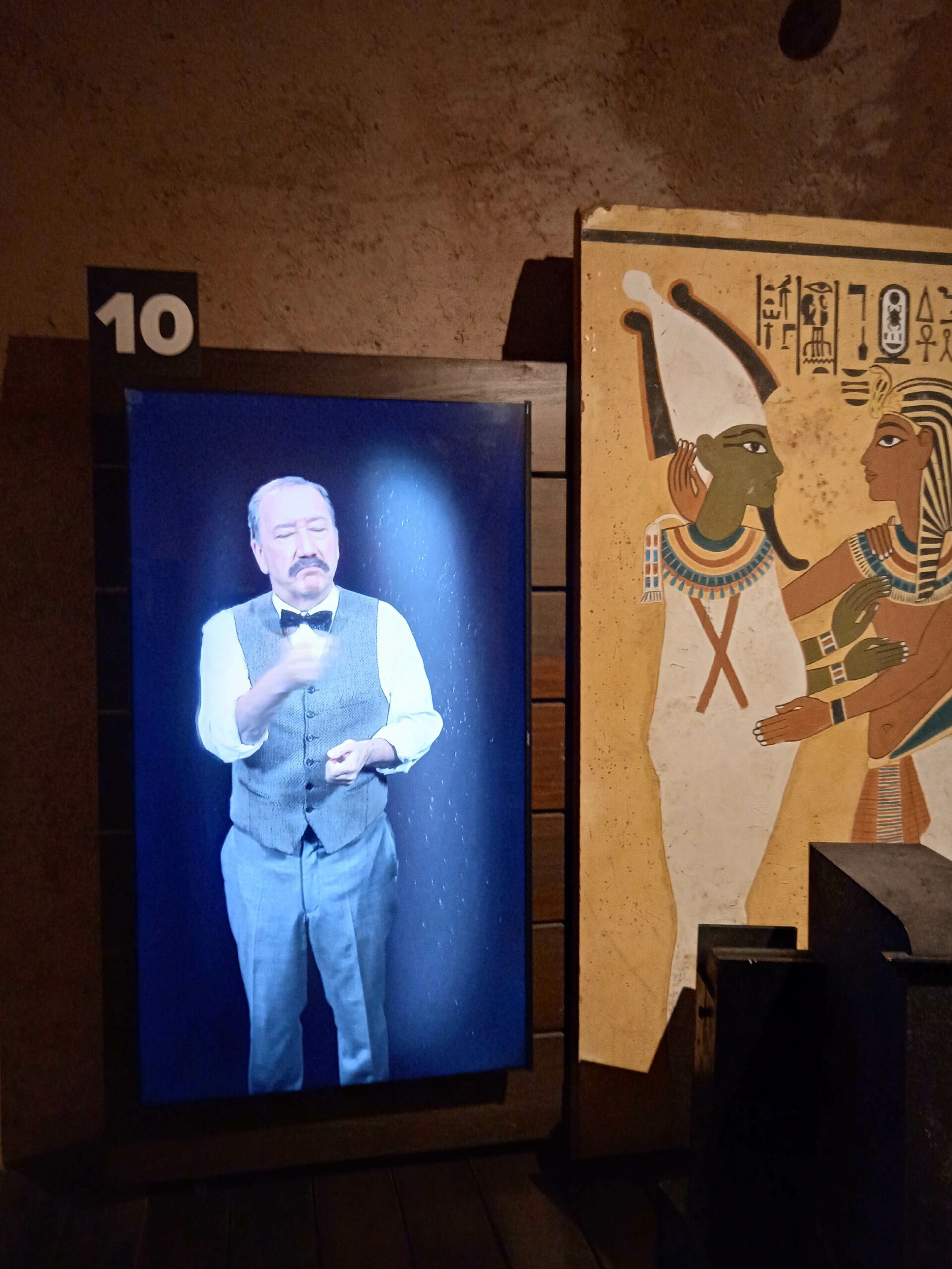 Howard Carter ,l’archeologo, ti accompagna virtualmente per tutta la visita, spiegandoti quanto ritrovato. Il corredo funerario è stato riprodotto fedelmente, con l’aiuto del Ministero delle antichità Egizie del Cairo, ma non solo…