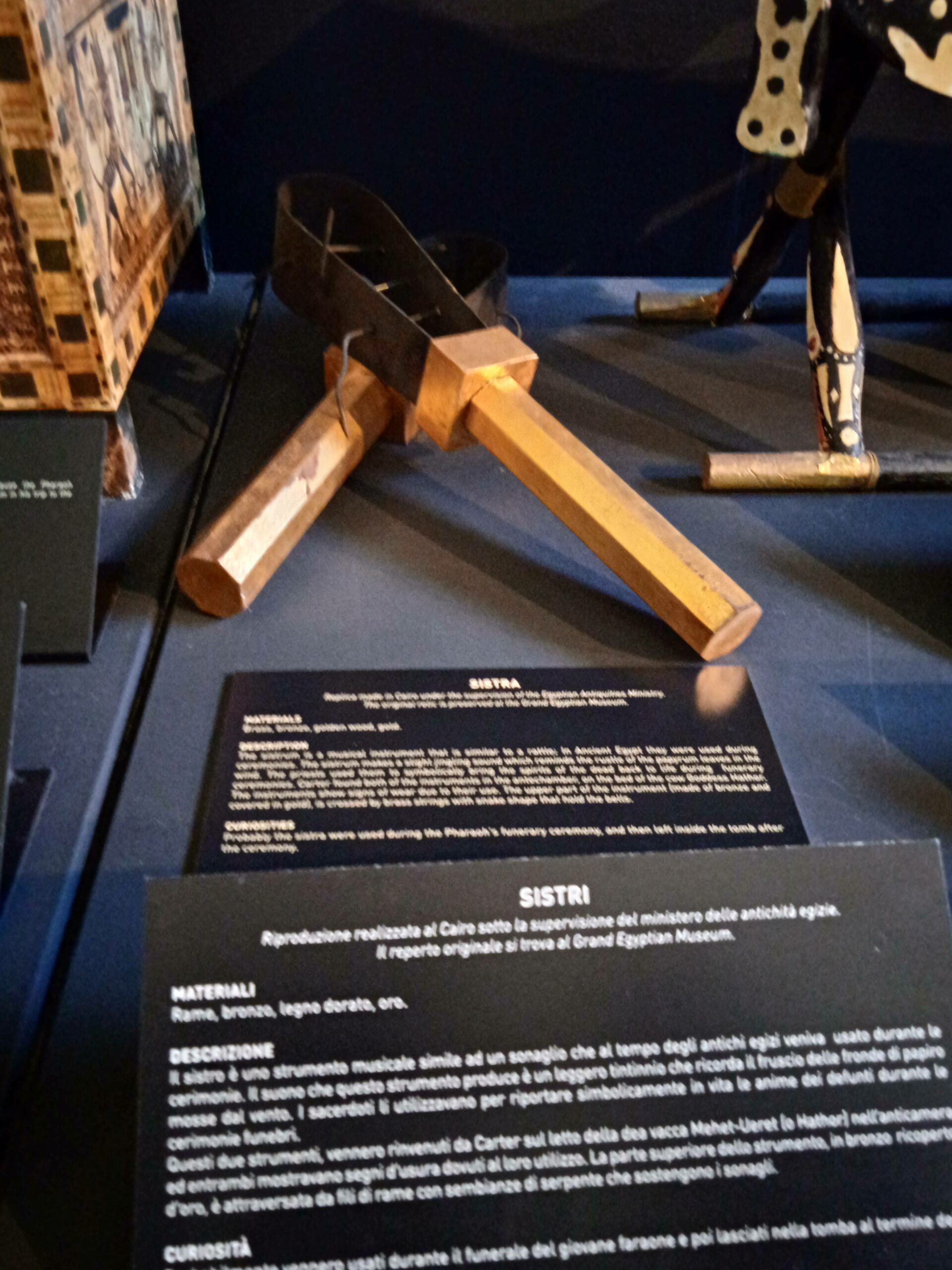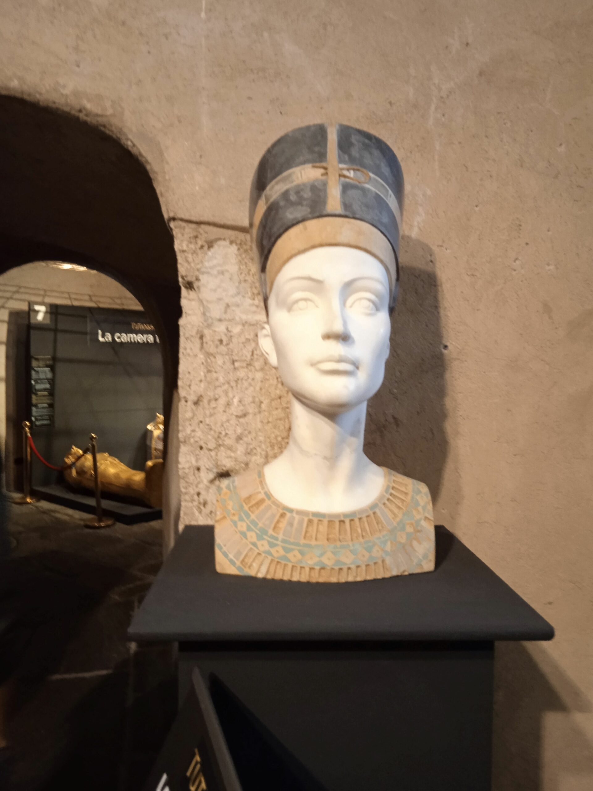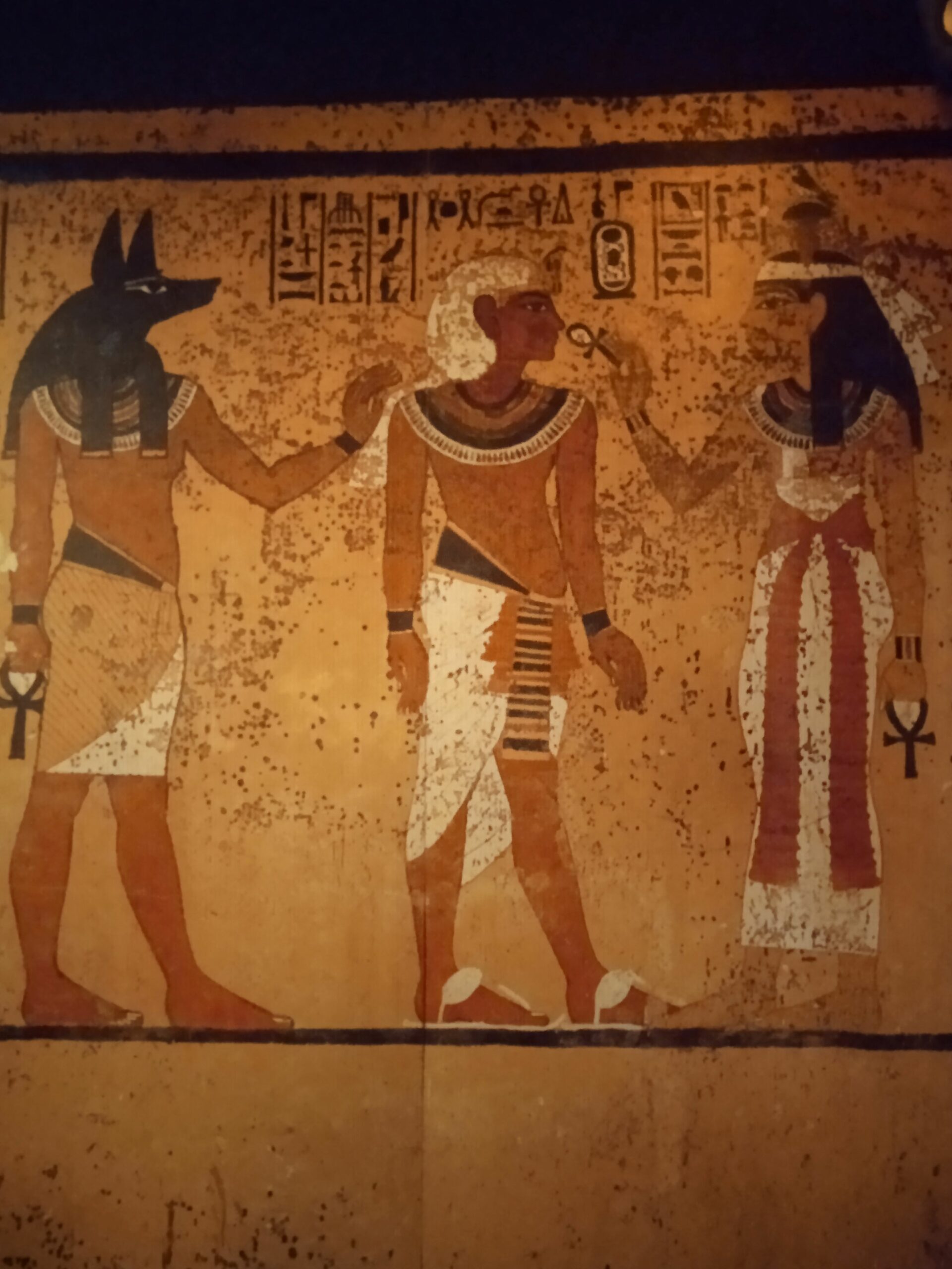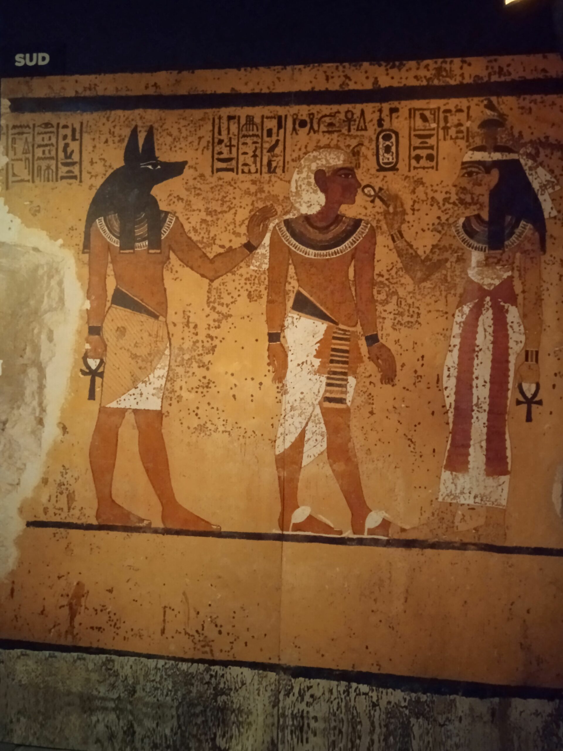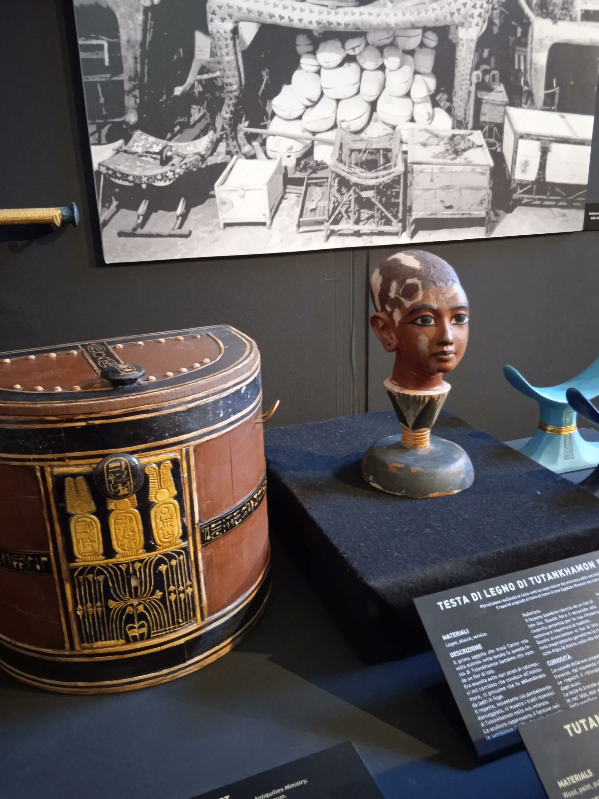 Accanto al nuovo sono state affiancate le foto dell’epoca e puoi rivivere l’emozione provata da Carter , quando ha scoperto la tomba..Scendi infatti una scaletta e attraverso un’apertura , praticata a doc su una parete di legno, vedi esattamente quanto ha trovato!