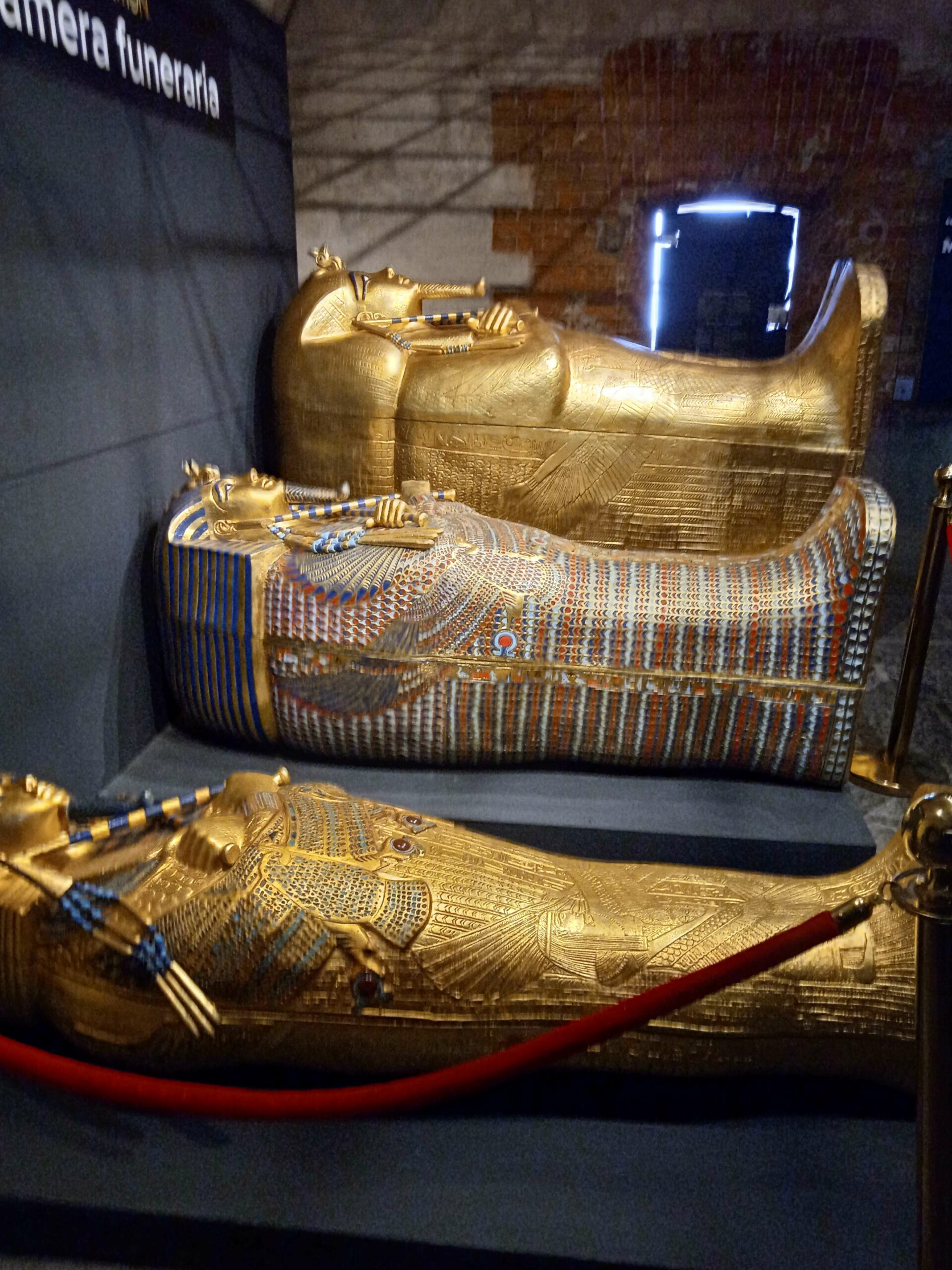 Emozionante.. grande anche la riproduzione dei tre sarcofagi ,in cui era contenuta la mummia di Tutankhamon.!