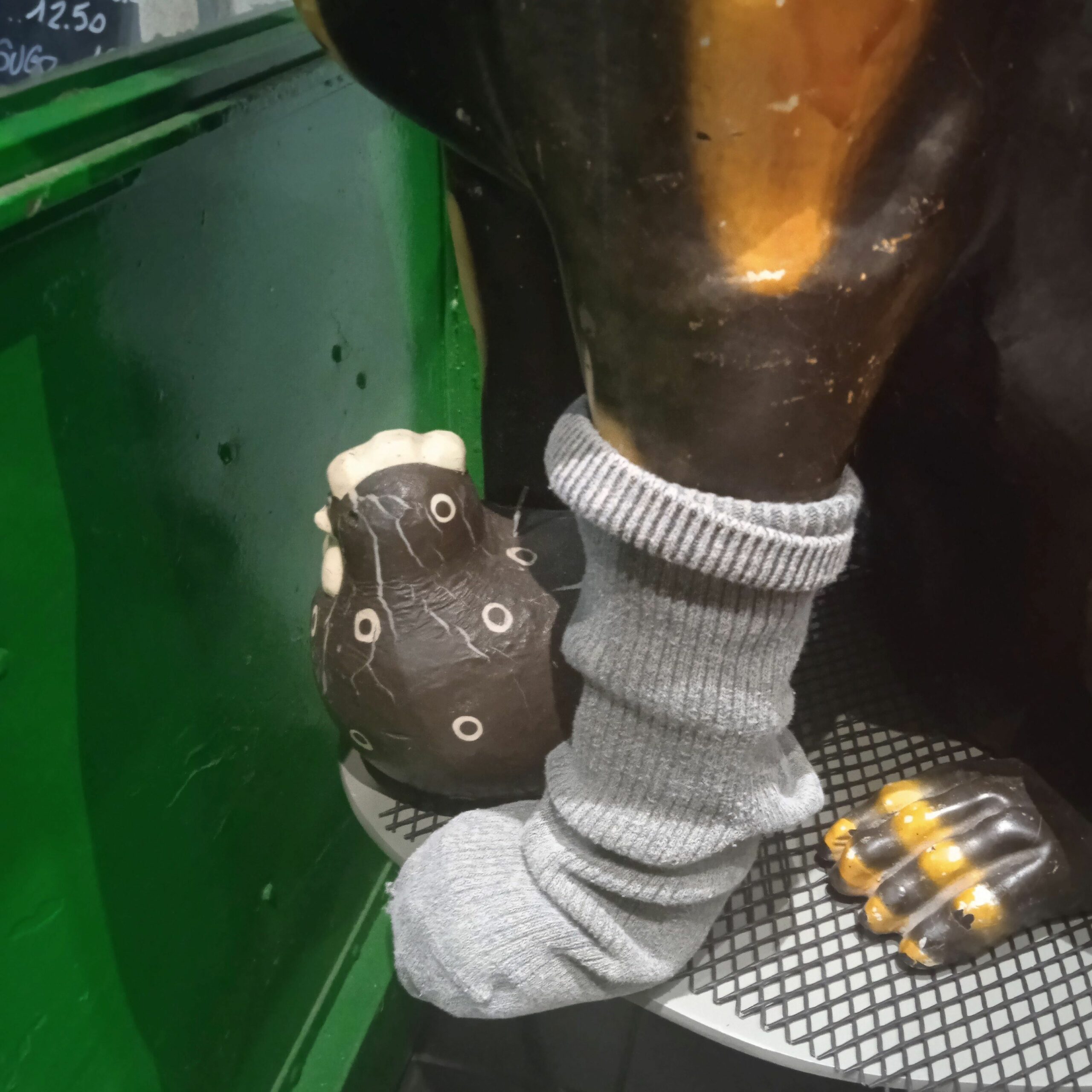 Settepolpette, con la sua amica paperella, è in vetrina ad osservare i polpacci delle signore, che passano e Mauro non ancora capito le vere sue intenzioni a riguardo!