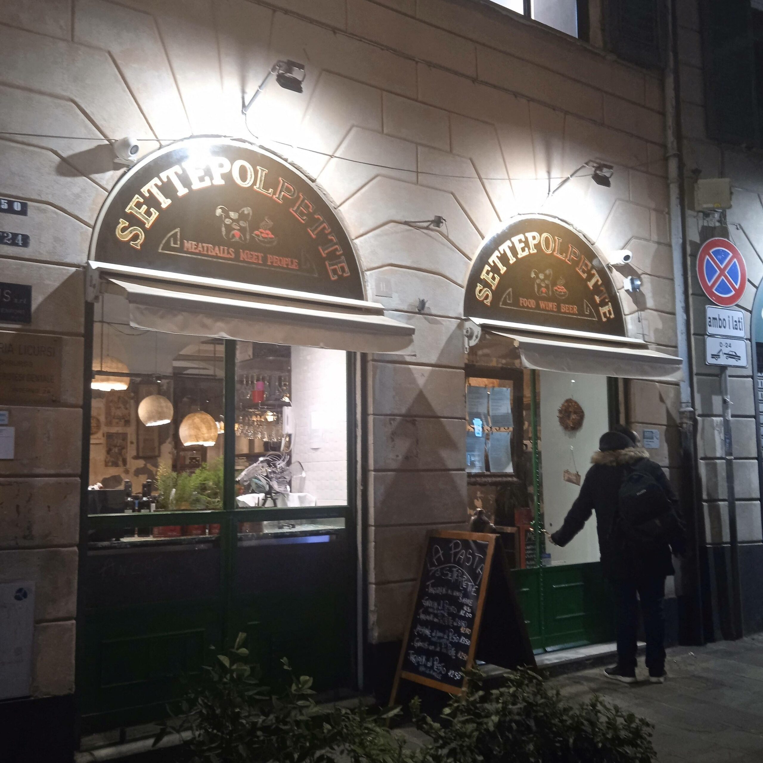 Si trova in fondo a via San Lorenzo , proprio vicino a Palazzo San Giorgio, zona Porto Antico e il nome è indicativo… SETTEPOLPETTE..