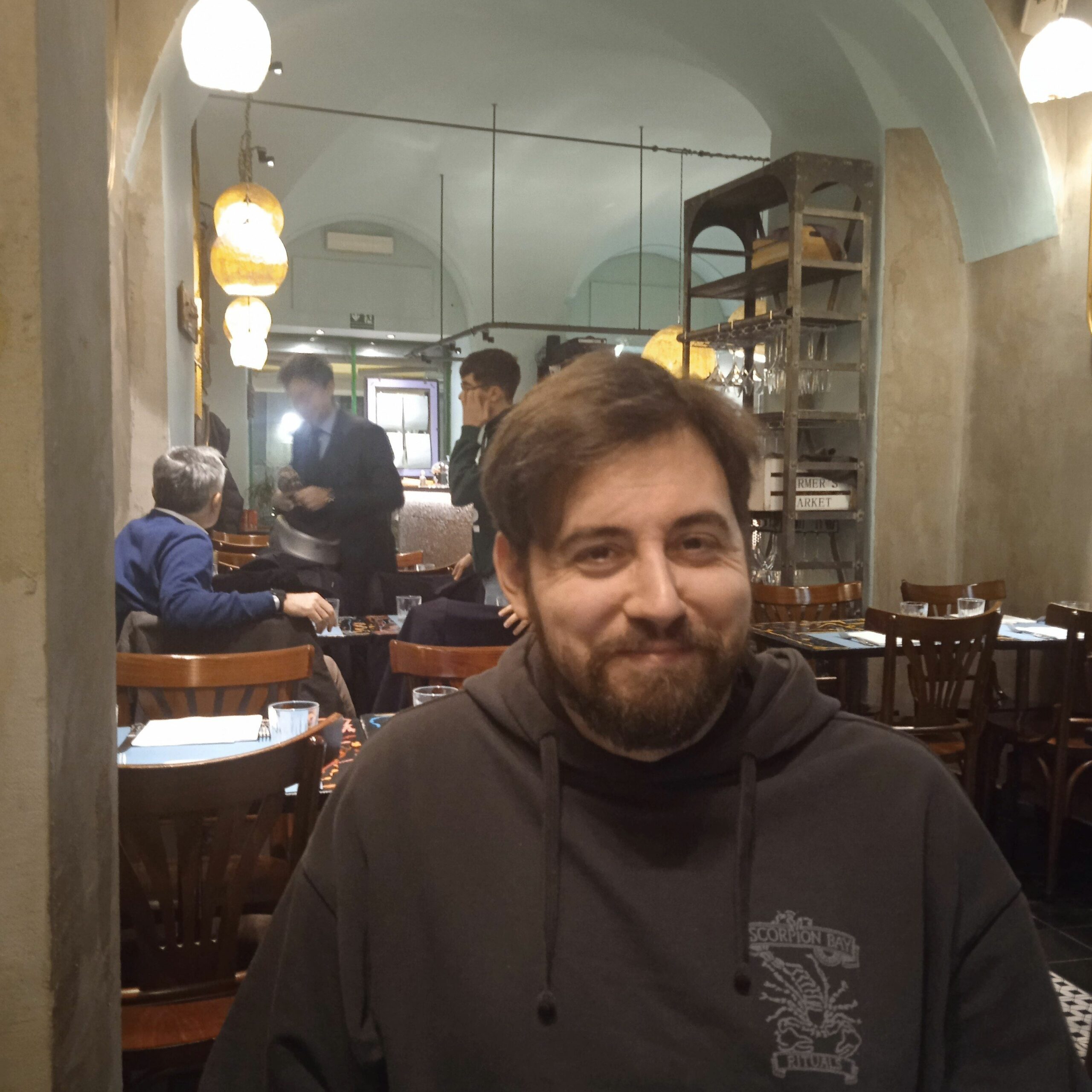Ho deciso di parlare con il “proprietario” Mauro, per scoprire un po’ di più sul caratteristico locale. E’ infatti un ambiente accogliente, informale, che ti riporta nel passato, in cui entrando sei avvolto dal suono di musica jazz-blues, proprio a sottolineare l’esperienza culinaria di assoluta particolarità