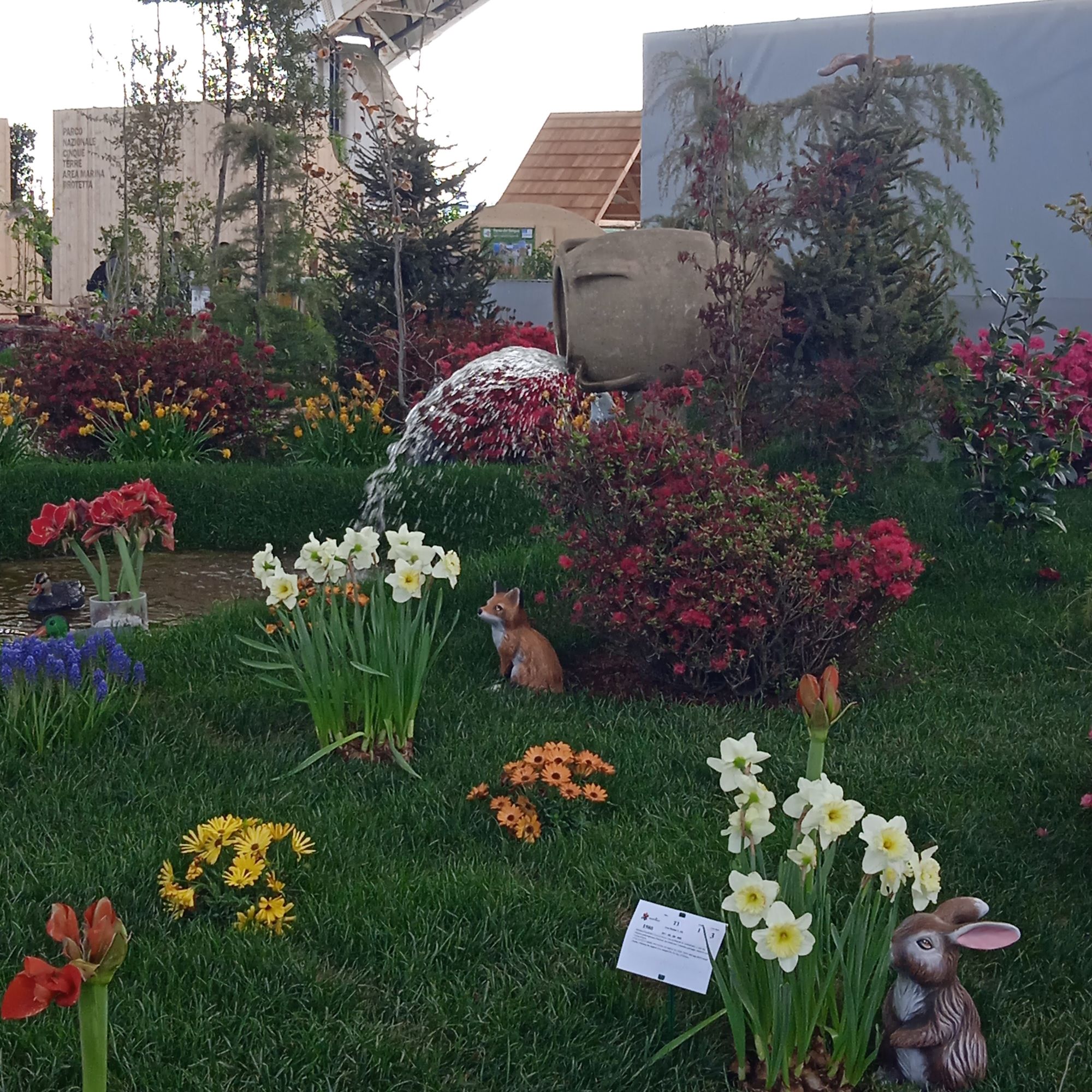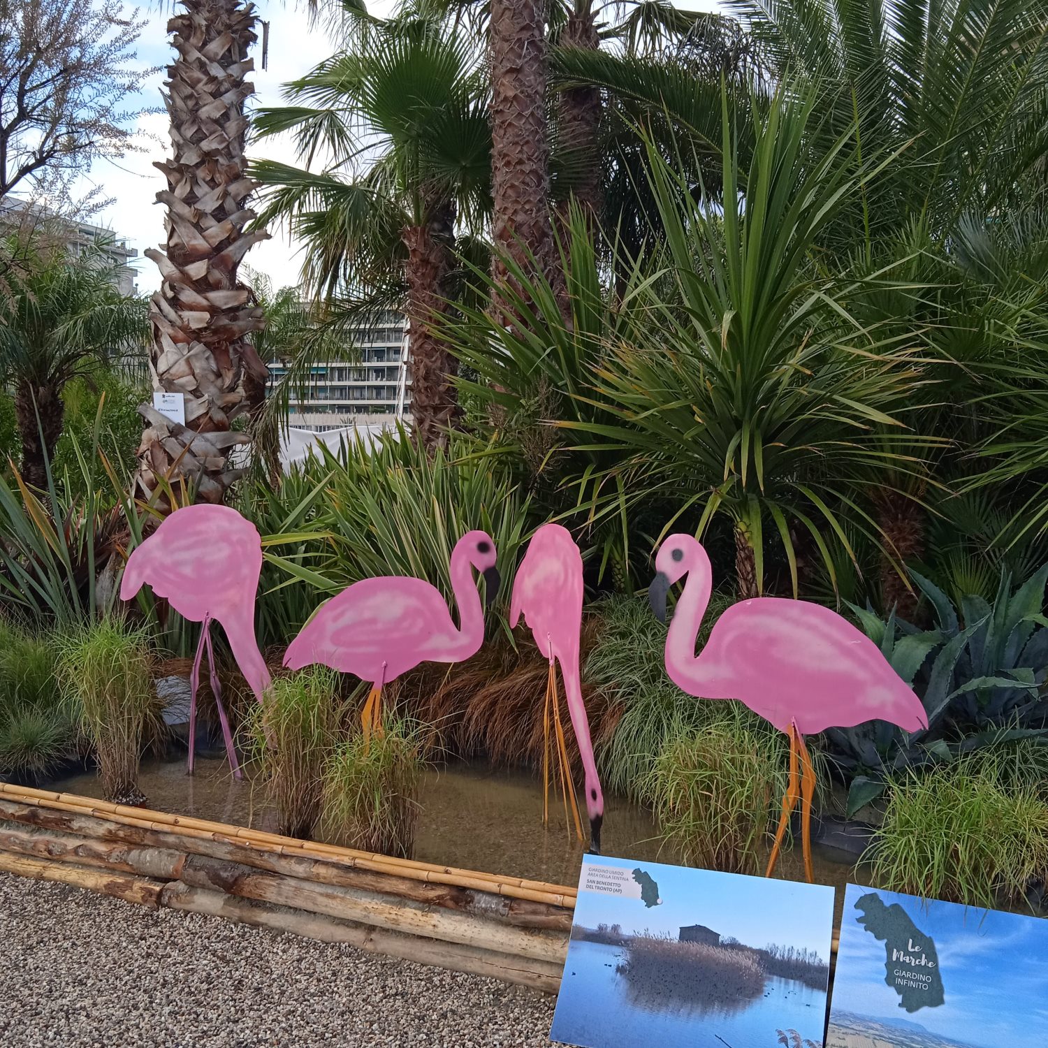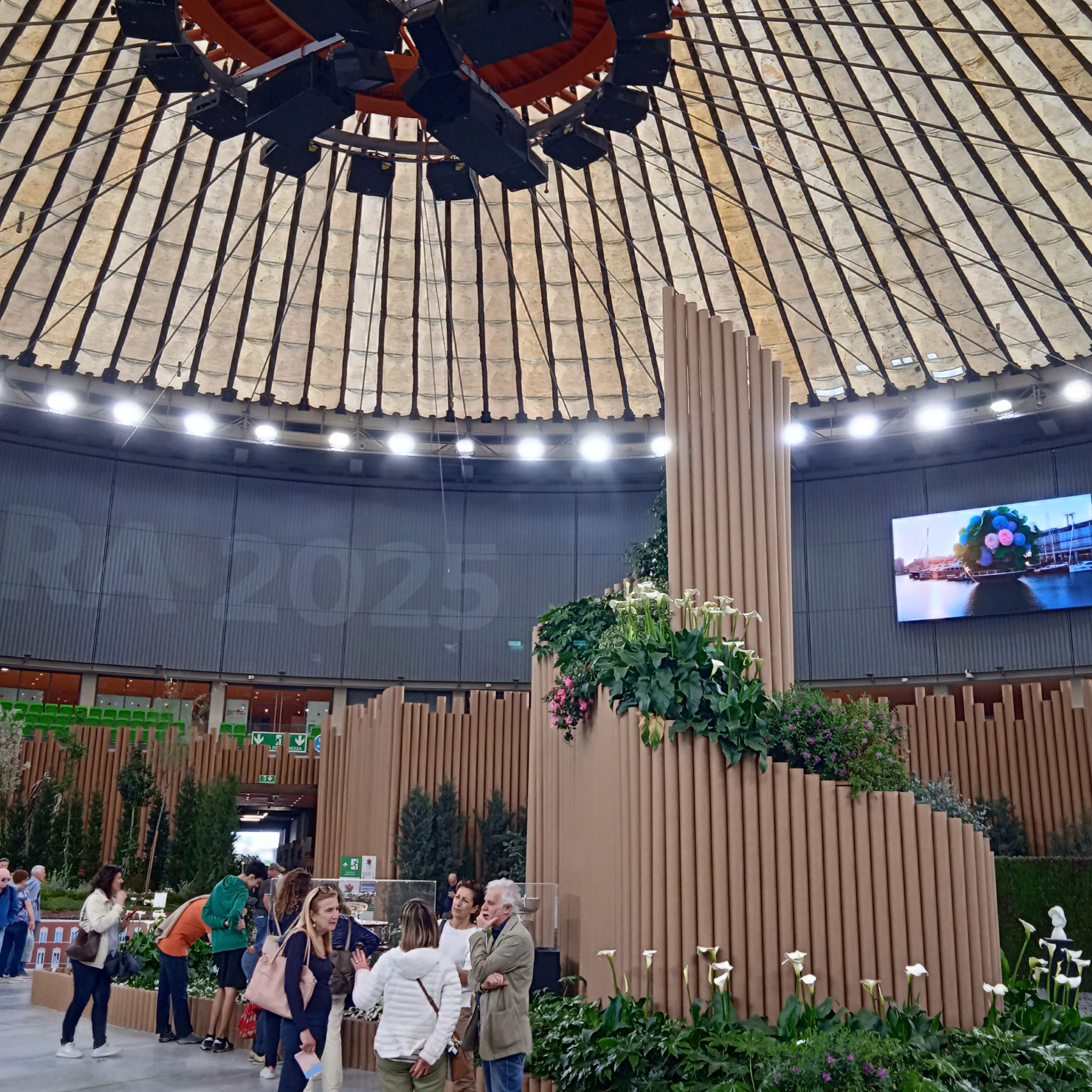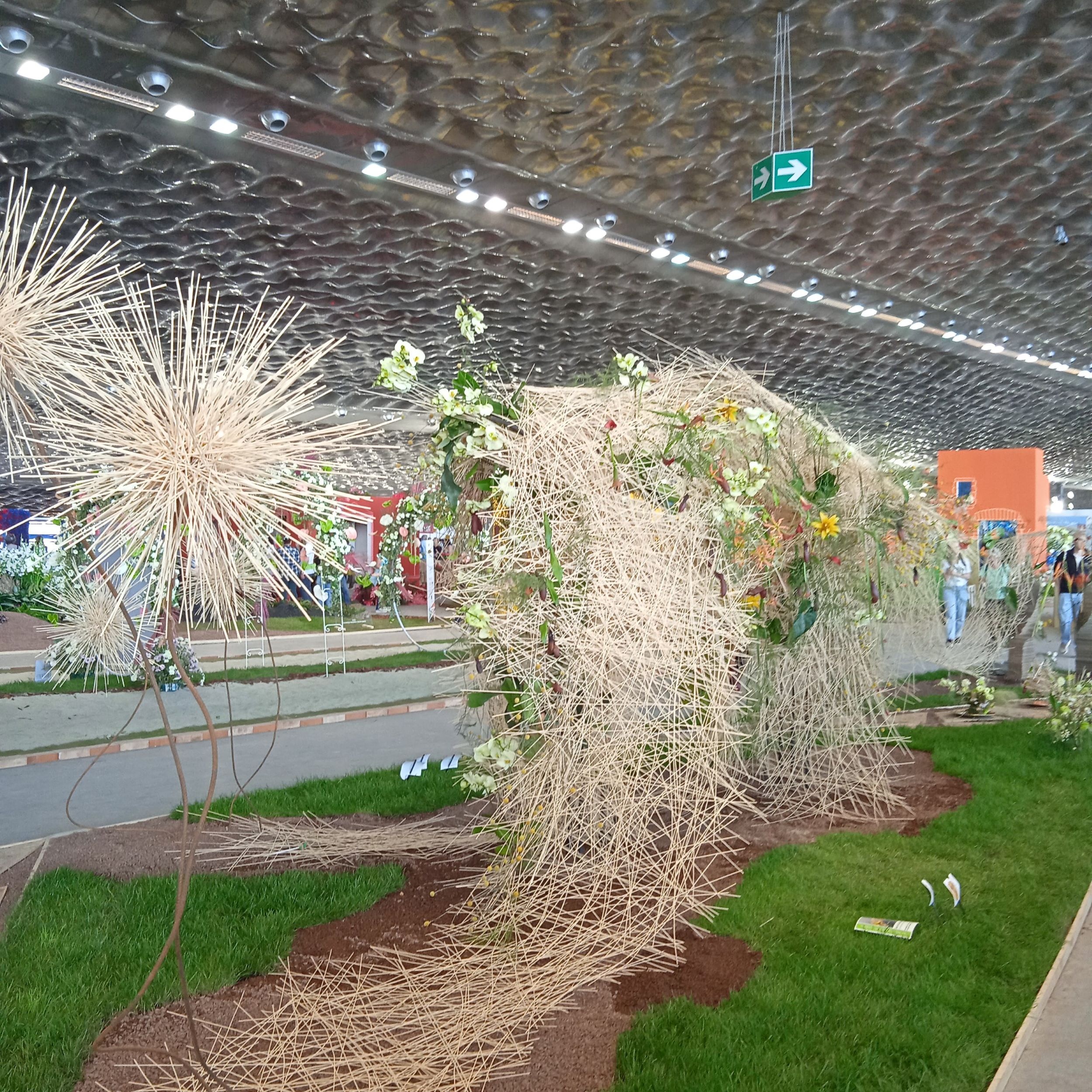 Dopo il piazzale le indicazioni ti portano proprio qui e mi guardo intorno.. L’esposizione è molto curata, ma sono un po’ delusa. Mi ricordo l’emozione provata nell’entrare al Palasport in una delle precedenti edizioni, quando era stato trasformato in un’enorme foresta con tanto di cascata….Oggi ci sono delle “composizioni” separate da paratie ,che riproducono un canneto, molto innovative, ma ,a mio parere ,troppo “fredde”…