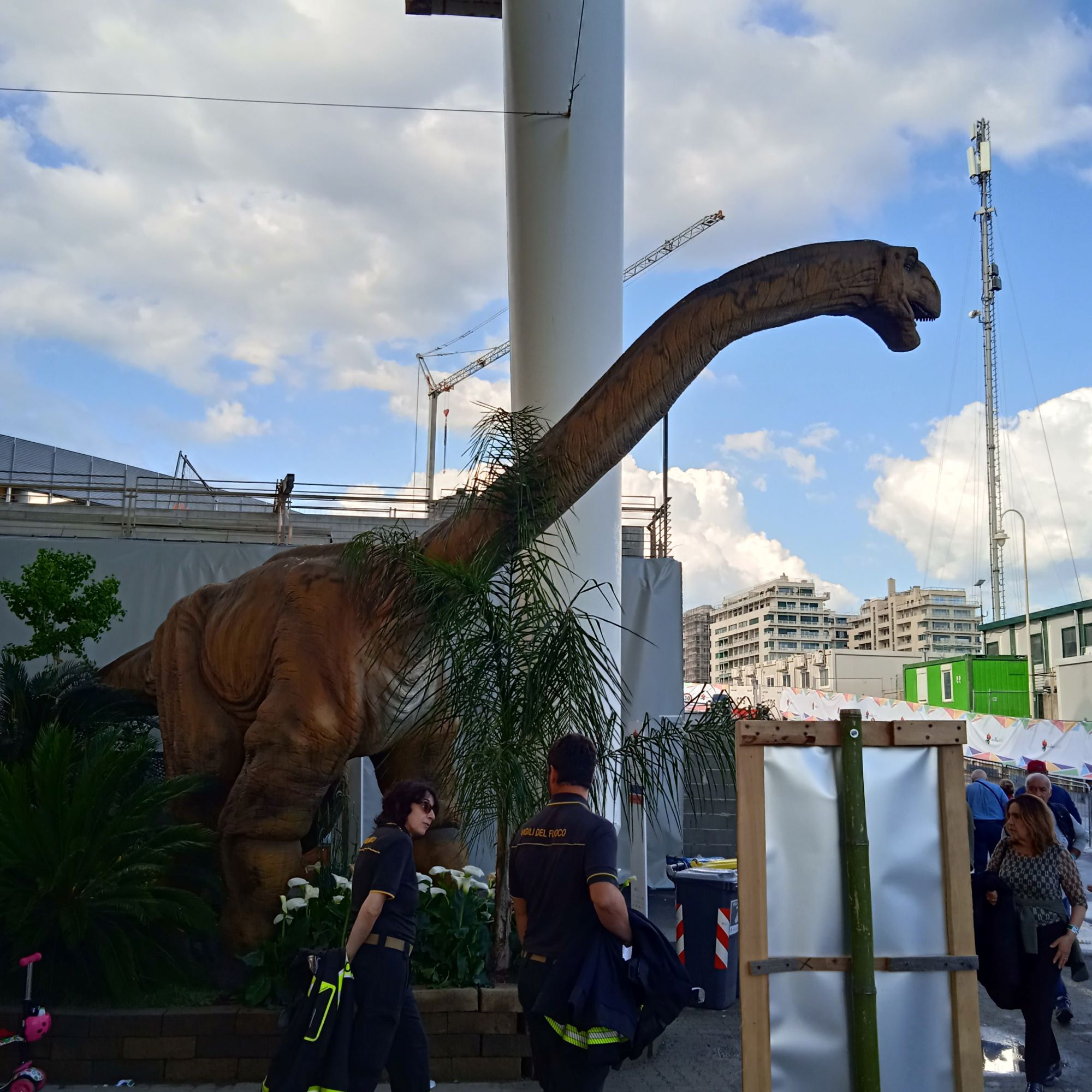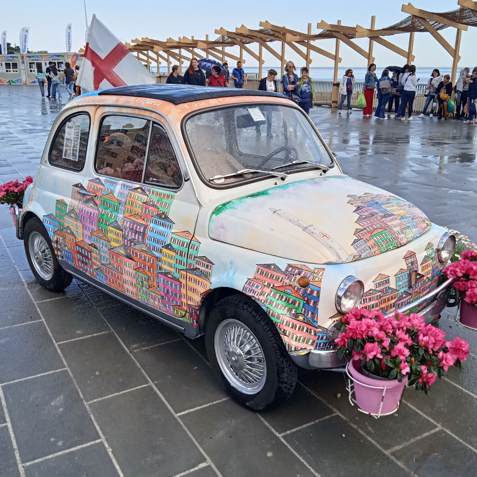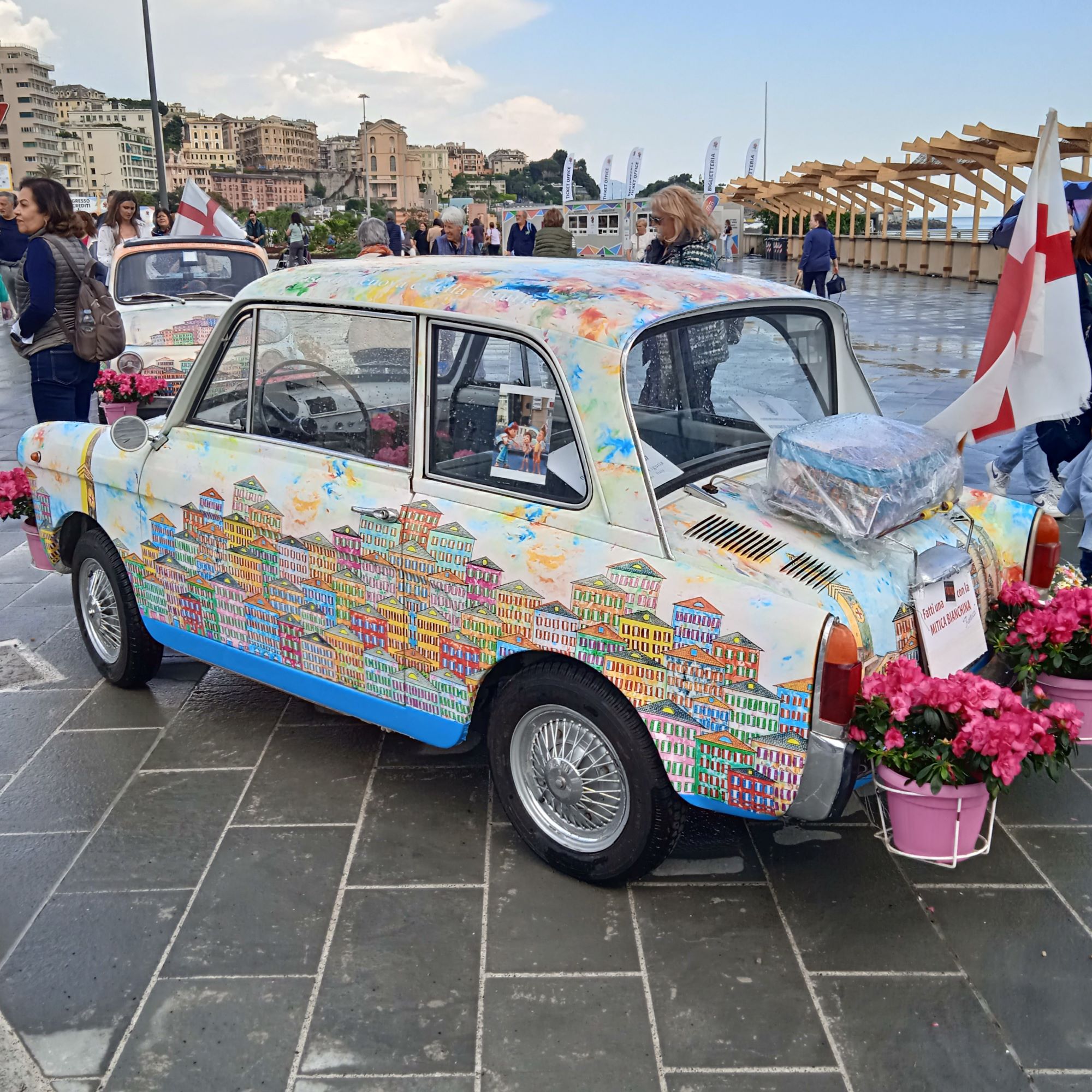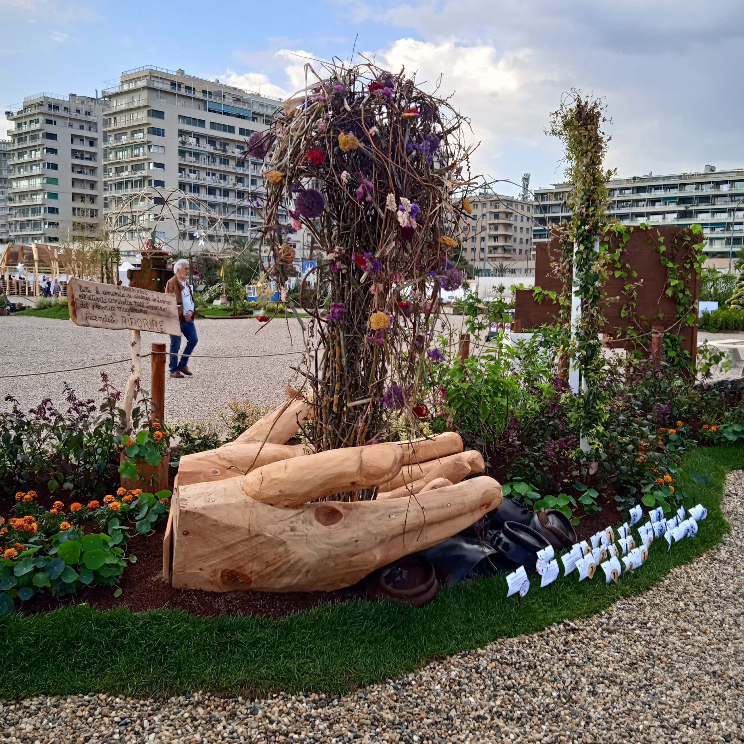 Sono andata nel pomeriggio del 28/04,pomeriggio iniziato con un bell’acquazzone…Ho pensato”e’ il massimo, considerato che una buona parte dell’esposizione è all’aperto in p.zzale Kennedy….”