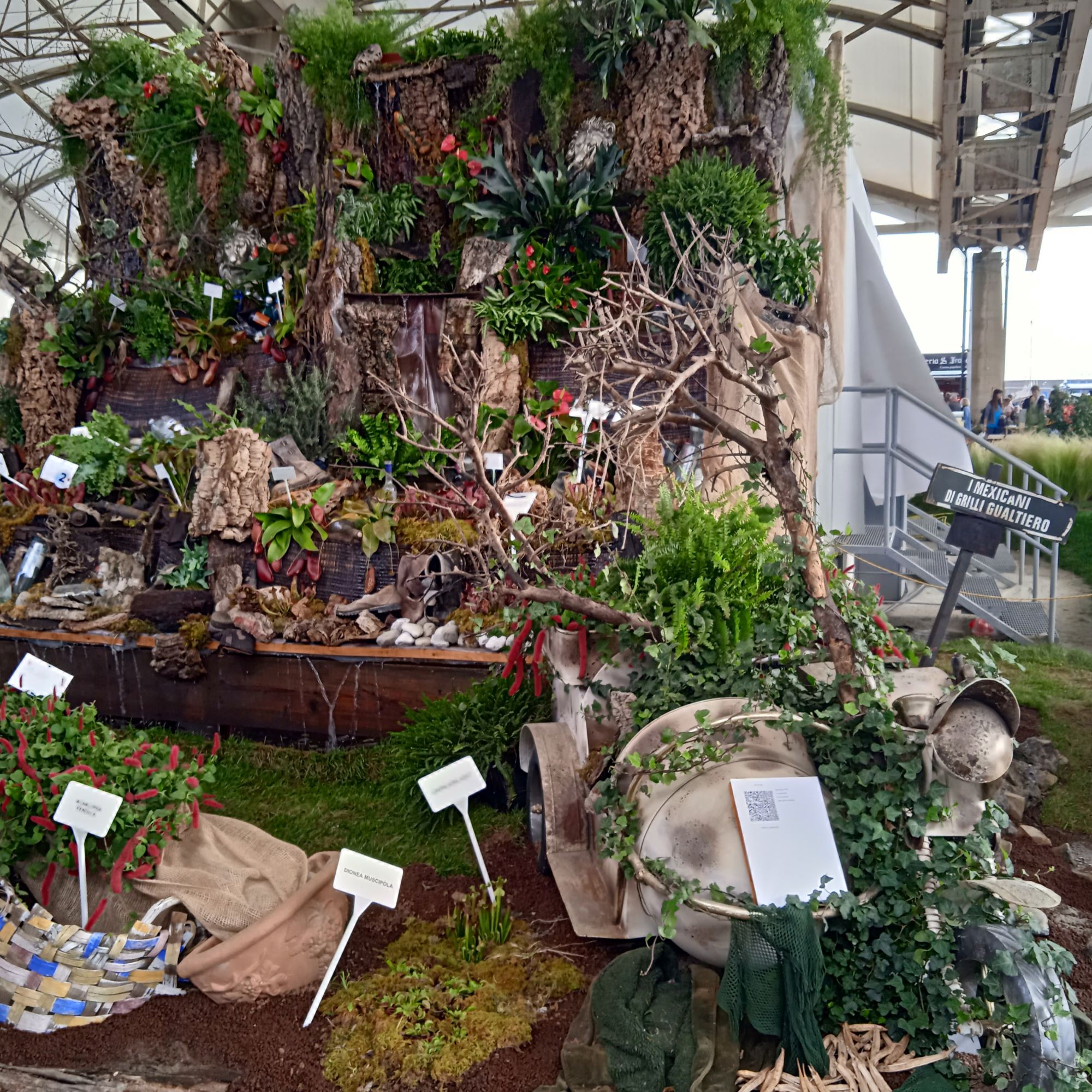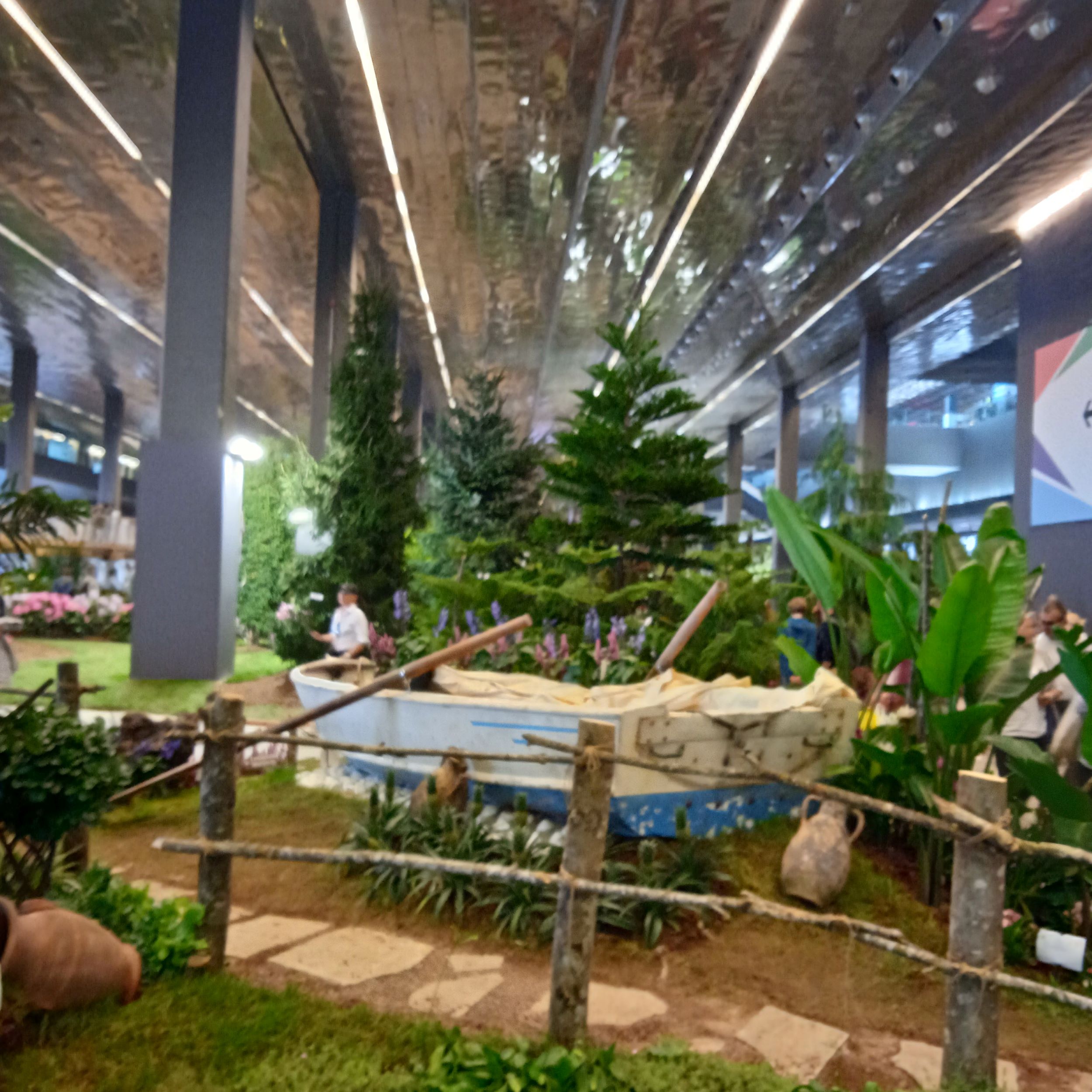 Qui l’ambientazione è molto suggestiva! Trovi palme, piante grasse , ma al piano superiore puoi ammirare l’esposizione dei bonsai e fare acquisti al mercato verde…..
