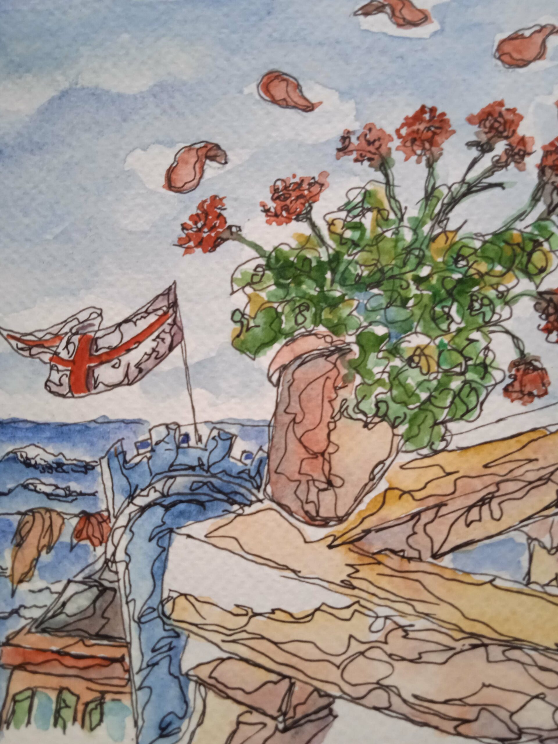 Direttamente “partorito” nella sede della mostra personale di Alessandra Sala, eccovi un’acquarello, legato all’amata Genova…leggiamo