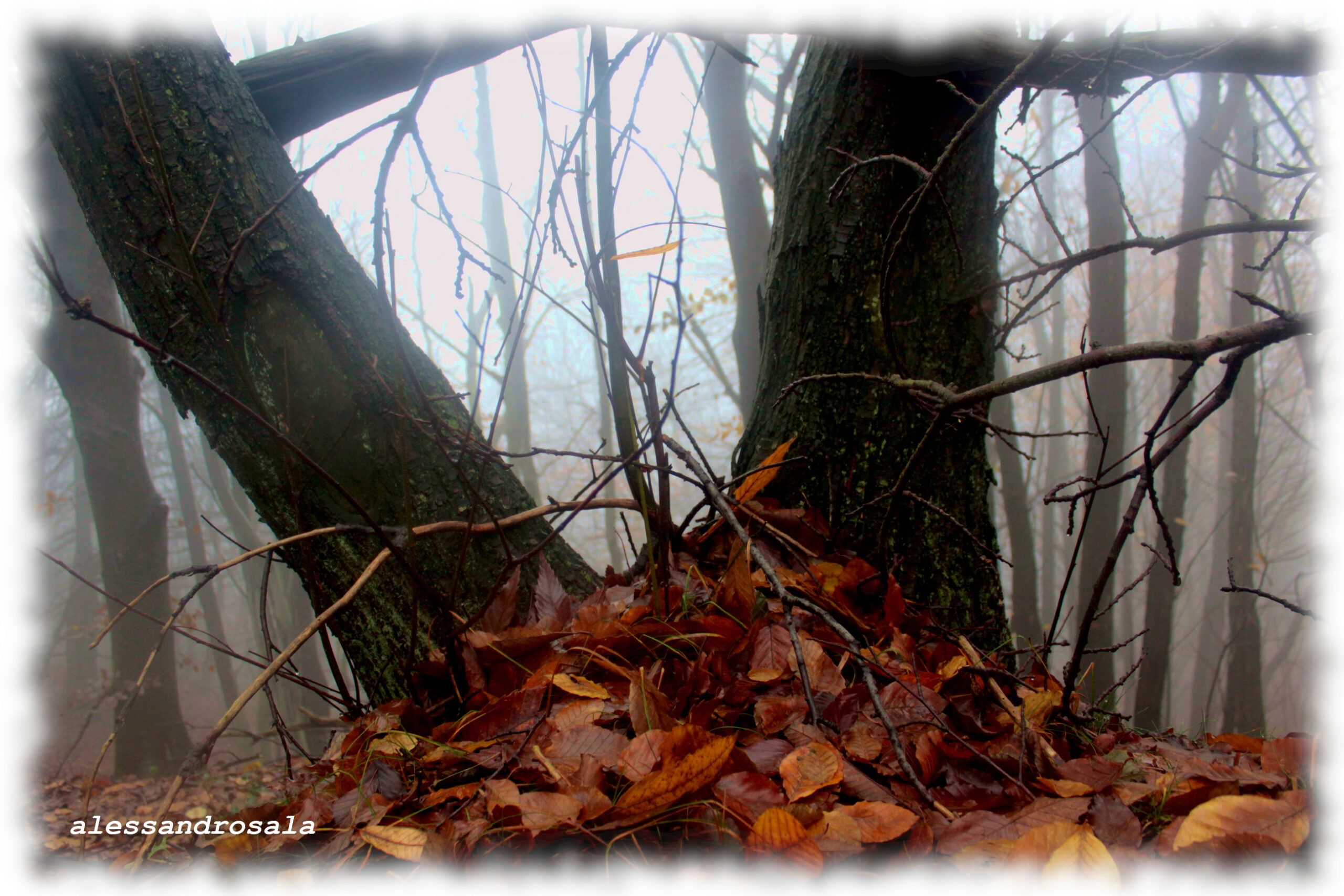 Il paesaggio sembra uscito da un libro di favole.. Ti aspetti che ,da un momento all’altro, tra i due tronchi, appaia un folletto, magari spuntando dal mucchio di foglie!
