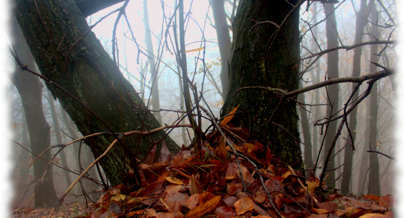 Il paesaggio sembra uscito da un libro di favole.. Ti aspetti che ,da un momento all’altro, tra i due tronchi, appaia un folletto, magari spuntando dal mucchio di foglie!