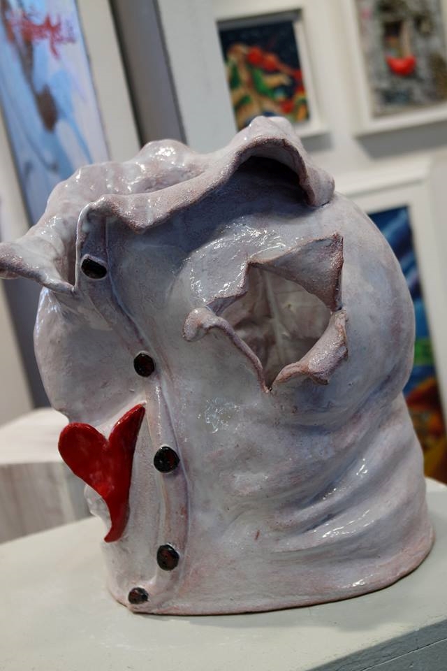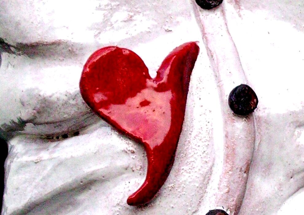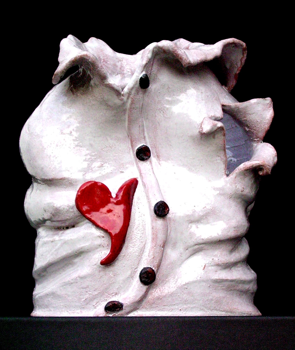 La scultura ha uno strappo sul lato sinistro perché il cuore vuole anzi dove uscire per urlare al mondo quanto è/era innamorato. I battiti soni alti e veloci per la propria amata e tutti sappiamo che cosa ci fa compiere l’amore. Il cuore esce e si va ad incastrare, quasi mezzo rientra nella zona ove è posizionato il fegato… non è una scelta casuale assolutamente no! Infatti l’amore può giocare “brutti” scherzi nella nostra vita, se non viene corrisposto, se si viene respint… spesso creiamo dei veri “film” sentimentalmente e può succedere che se ne paghiamo le conseguenze… ahimè! Ci logoriamo il fegato ed a nulla servirebbe il noto liquore al “carciofo” ,che le persone over 50 ricorderanno molto bene. Un poco di ironia non fa mai male!!!